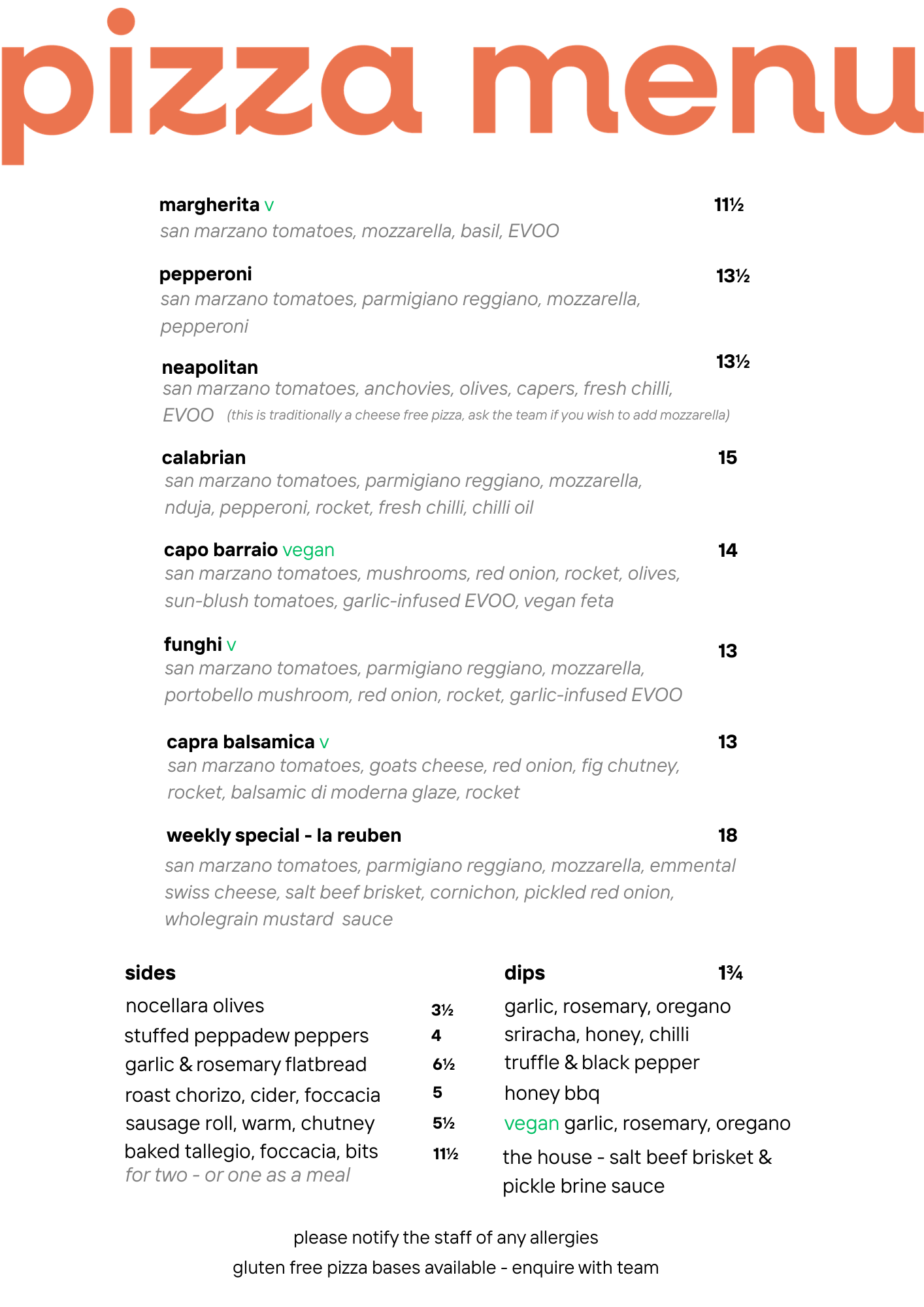 please notify the staff of any allergies | any pizza can be made gluten free